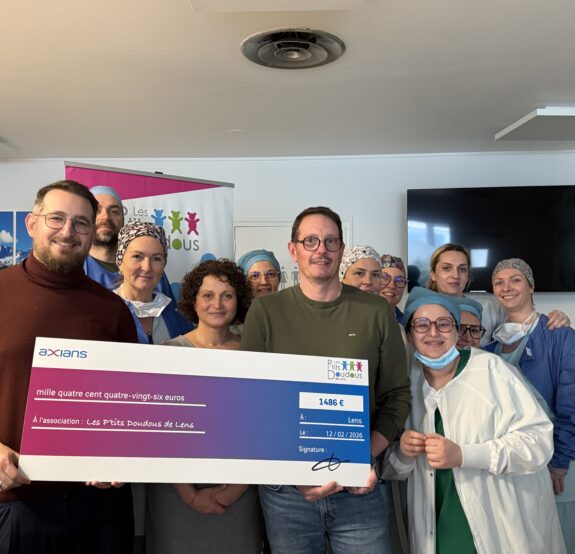 Nous avons eu le plaisir d’accueillir la société Axians, venue remettre un chèque à l’association Les P’tits Doudous de Lens qui œuvre pour améliorer l’accueil des enfants au bloc opératoire du Centre Hospitalier de Lens.