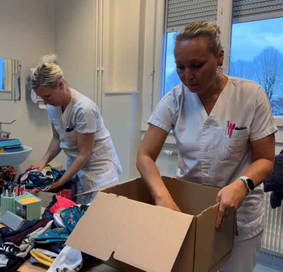 C’est la seconde année que les professionnels de cette entreprise transforment des t-shirts en bonnets destinés aux patient(e)s qui bénéficient d’une chimiothérapie au sein du Centre Hospitalier de Lens.